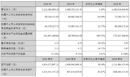挖贝网 4月16日,凯龙高科(300912)发布了2020年年度业绩快报,去年公司实现营业收入11.23亿元,较上年同期增长5.29%,归属于上市公司股东的净利润9,953.65万元,较上年同期增长64.09%。