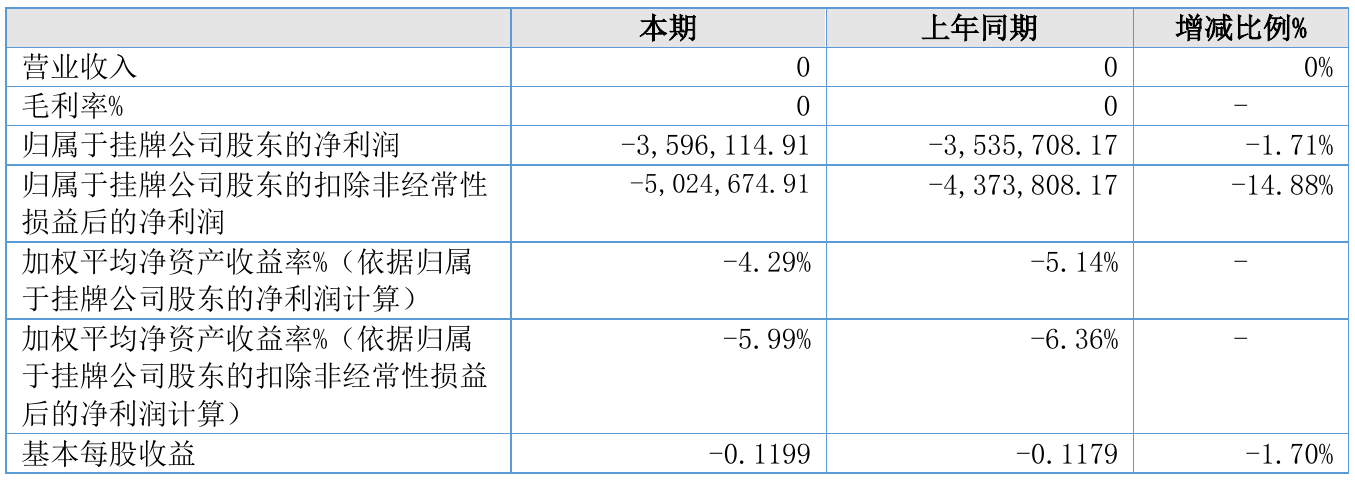 挖贝网8月18日,菁华果业(872707)近日发布2021年半年度报告,报告期内营业收入0元,同比增加0%;亏损3,596,114.91元,同比亏损增加1.71%。