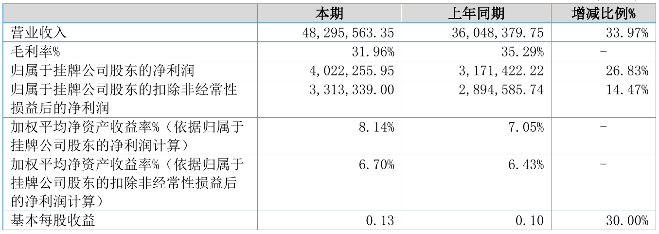 挖贝网8月18日,天宜机械(832654)近日发布2021年半年度报告,报告期内营业收入48,295,563.35元,同比增加33.97%;净利4,022,255.95元,同比净利增加26.83%。
