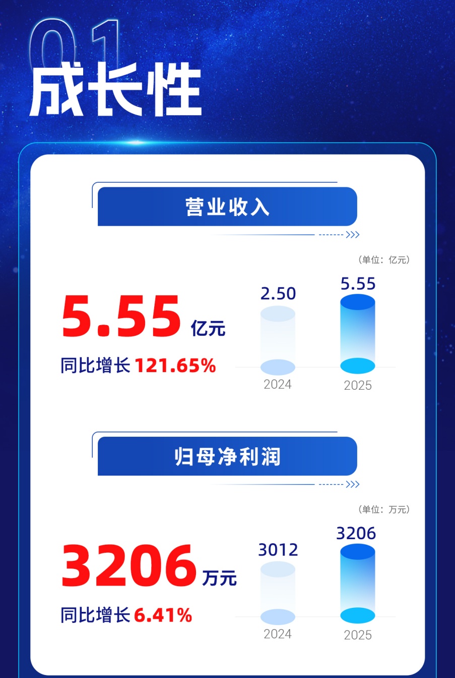 2025年,车讯互联(834327)营收同比大增121.65%至5.55亿元,刷新历史最高纪录,更实现跨越式发展,相较于2018年至2024年2亿元至3亿元营收规模,明显跨上新台阶;实现净利润3206万元,也实现同比增长。