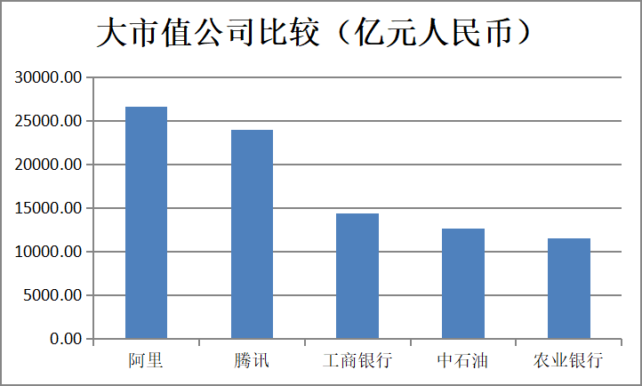 如果我们拿整个A股的最大市值公司跟阿里和腾讯比较,形势是这样的:
